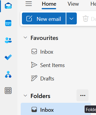 - In the left-hand panel, hover your mouse over the Folders heading. A set of three dots (…) will appear to the right.