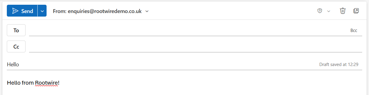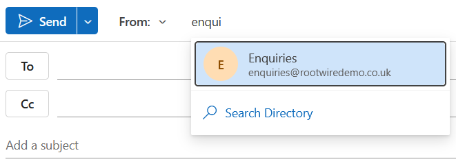 - Compose and send your email as normal. It will be sent from the shared mailbox address.